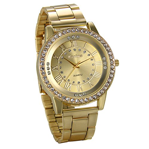 • CLASSIC CASUAL DESIGN: analog dress watch casual design, bling rhinestone accented bezel , roman number time mark with the simplicity of business casual, bring you back to the classic. Also make it a great gift for family or friends.