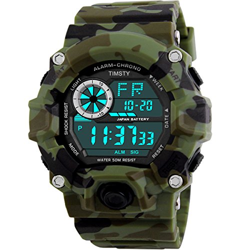 - • WEAR EVERY SINGLE DAY:Boasting a sturdy, comfortable PU polyurethane silicone band strap in military camo colors and a LED backlight feature that allows you to tell time in the dark, it will look great with all your sports outfits.