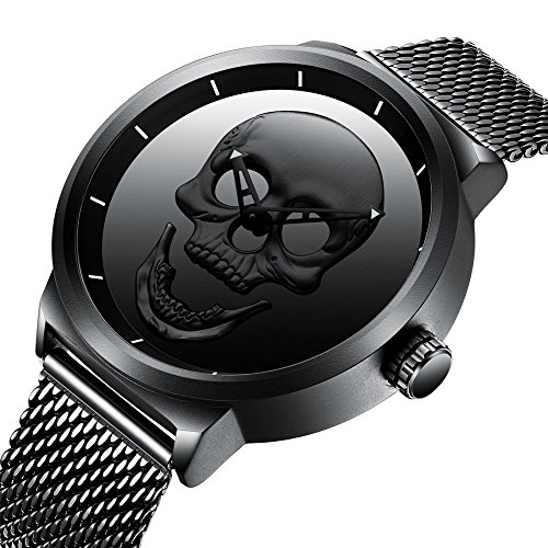 - ★FASHION and CLASSIC DESIGN WATCH FOR DAILY USE: Special Skull Dial Design; Luxury and Fashion design; Excellent texture; High quality stainless steel mesh strap; Key Scratch Resistant Watch Face Made of High Hardness Glass; Case Diameter: 48mm; Band Width: 22mm, Band Length: Men’s Standard
