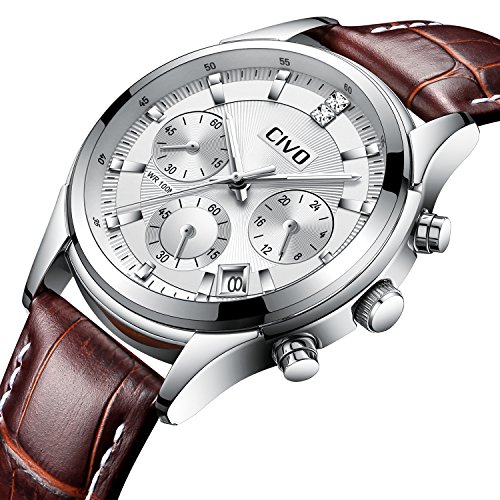 2. High Quality Genuine Leather Watch Band and Bright Watch Case: expensive plating and high quality leather watch band are taken to produce our CIVO men’s wrist watch, which makes our CIVO wrist watch look luxurious and never fade