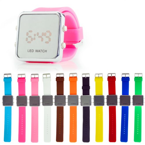 LED ,Stainless steel , Ultra-soft and comfortable safety silicone strap . COOL LED watch with the following specification: revolutionary design – better look, better performance. The larger word – for easy reading the digits Watch. Shell size Thickness: 10mm, Strap width: 28mm, Suitable wrist: 130mm-190mm (adjustable wrist girth) unisex Package includes: 1 x Watch