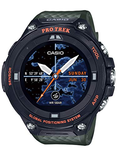 - Imported; This app is not available on the watch with iOS devices, Android Wear 2.0, GPS, 5 Bar WR, Mil-Standard 810 G Durability, 50M Water Resistant