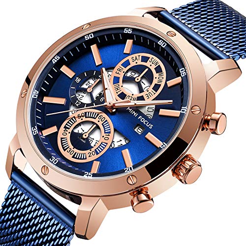 - DURABLE WATCH: Eco-friendly polished blue plated metal watch case,non-fading and non-allergic.scratch resistant hardness mineral glass face,smooth stainless steel mesh strap without any hurts,adjustable solid buckle is easy to change and fit properly,convenient and comfortable to wear.