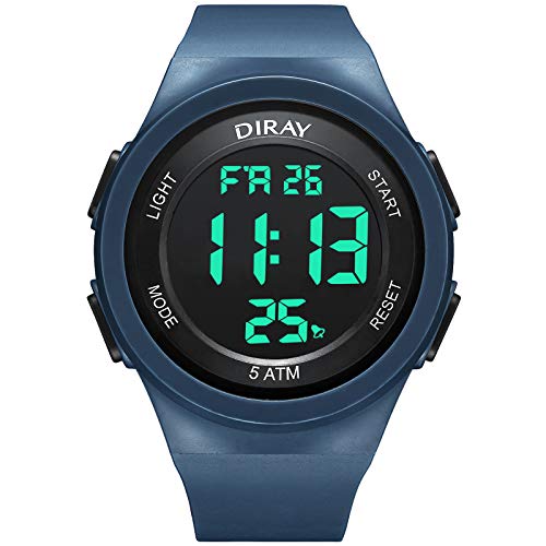 - Blue Digital Watch with Multi-Functional: 12/24 hour system,day and date window, alarm clock, chime on every hour, stopwatch, LED display, Press”LIGHT”button to see the time clearly in the dark, easy to read.