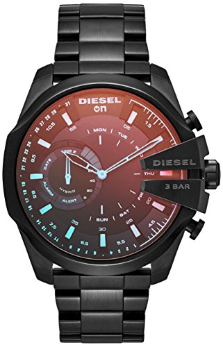 - Add high-tech style with signature Diesel flair to any look with the Diesel On Mega Chief hybrid smartwatch. A black IP case is paired with a single-link bracelet and a black sunray dial, accented with an iridescent crystal, applied silver indexes and white printed tracking