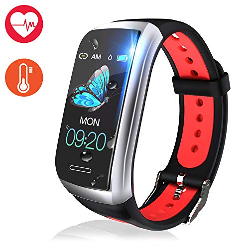 - 【USB Charging & IP67 Waterproof】This fitness tracker is charged via USB cord. Use the charging clip to connect the 2 metal points on the back of the smart watch and then directly put it into a normal USB port. IP67 Waterproof resistant for sweat, rain, splash proof. We will not recommend wear the fitness tracker when swimming (because the water pressure is too high) and taking a shower (because it is hot water).