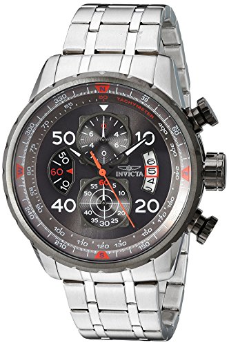 - Round watch featuring tachymeter and compass on inner bezel, chronograph subdials, and date window