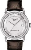 Stainless steel case with a brown leather strap. Fixed stainless steel bezel. Silver dial with silver-tone hands and index hour markers. Minute markers around the outer rim. Dial Type: Analog. Luminescent hands and markers. Date display at the 3 o’clock position. Automatic movement with an 80-hour power reserve. Scratch resistant sapphire crystal. case back. Case diameter: 41 mm. Case thickness: 9.7 mm. Round case shape. Band width: 18 mm. Butterfly clasp. Water resistant at 50 meters / 165 feet. Functions: date, hour, minute, second. Casual watch style. Tissot Luxury Powermatic 80 Automatic Silver Dial Brown Leather Men’s Watch T0864071603100.