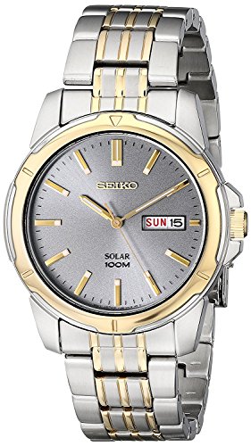 From the master craftsmen at Seiko, the Seiko Men’s SNE098 Two Tone Stainless Steel Analog with Grey Dial Watch is a cutting-edge timepiece with a masculine appeal. Featuring a black analog dial and a two-tone stainless steel band, this watch is packed with style and would be a great addition to your watch collection.
