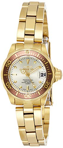 • Gold-plated watch with rose-tone unidirectional bezel and champagne dial with magnified date window and luminous hands/indices