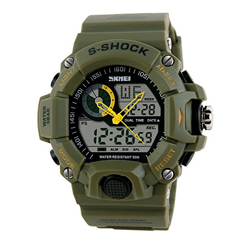 - Rubber band is smooth to wear and sturdy in structure.d. 5ATM water resistant is convenient for your daily life, when you wash hands, wash face, needn’t to take off the watch; e. Give you precise time at anytime and anywhere; f. It is also a good gift for you,sweetheart and your friends.