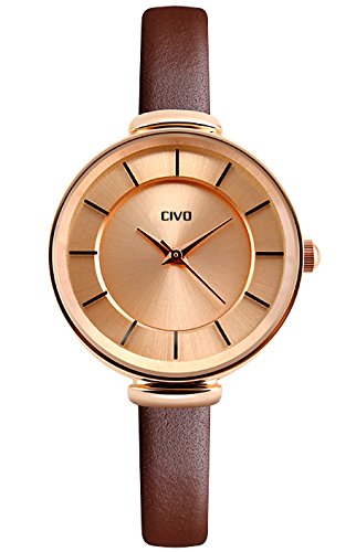 2. High Quality Leather Watch Band and Bright Watch Case: expensive plating and high quality leather watch band are taken to produce our CIVO women’s wrist watch, which makes our CIVO wrist watch look luxurious and never fade