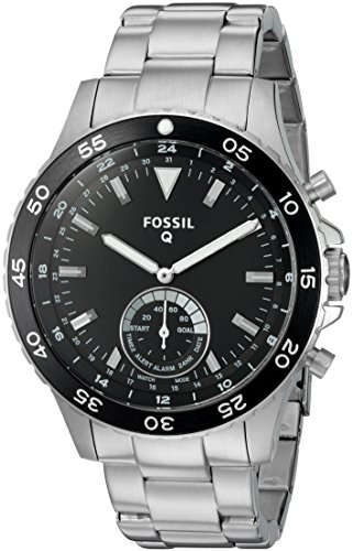 Meet Q Crewmaster, our yacht-inspired hybrid smartwatch that blends analog design with smart connectivity. With our new smart technology, this handsome wrist essential is always on, always connected with a battery life up to six months (based on usage). Fastened in a three-link stainless steel strap, the Q Crewmaster features stick indices and a black brushed rotating timing bezel. Using Bluetooth technology, receive smartphone notifications and accomplish daily fitness goals when the hour, minute and sub-eye hands spin or the watch case vibrates. Set an alarm,view 24-hour time, compare time in multiple time zones and track everything from steps to calories to sleep. Press the bottom pusher to take a photo, control music or find your phone with the help of our Fossil Q App. Customize your look with interchangeable straps. Q Crewmaster’s sportsmanship and smart functionality makes for the perfect (high seas) companion.