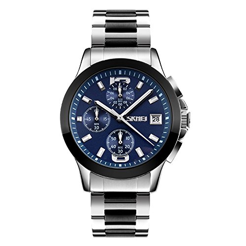 - CLASSIC BUSINESS CASUAL STYLE:Round watch blue dial with featuring hour marks and auto date.