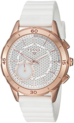 - White silicone hybrid smartwatch; compatibility: android os 4.4+ or iPhone 5/iOS 8.2+